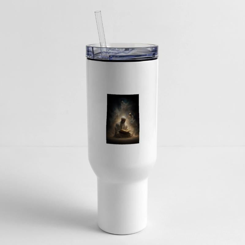 - Travel tumbler with lid and handle