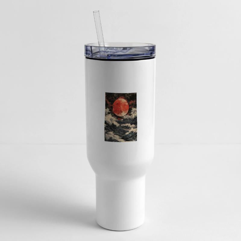 Red Moon Over Stormy Sea