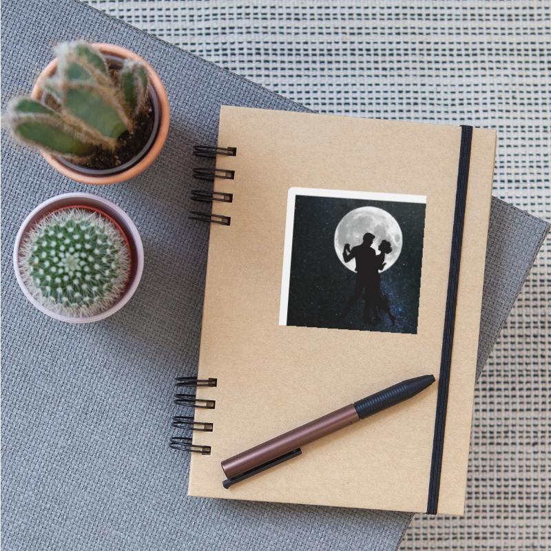 Silhouetted Couple Under Full Moon